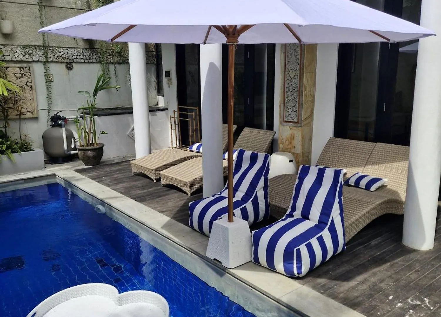 Аквапарк "Уотербом Бали" находится в 15 минутах езды на машине, а такие культурные достопримечательности, как Дворец Пемекутан, расположены приблизительно в 7 км от виллы. Вы будете находиться всего в 9 минутах ходьбы от Саронга и всего в 10 минутах езды от Парка развлечений Finns Recreation Club. Гости также могут посетить улицу Пантай Бату Болонг менее чем в 3 км.